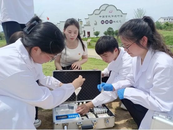 7月2日,赴信阳新县新集镇、光山东岳村实地调研,我院学子运用所学专业,准备好所需试剂,例如溶解氧、总氮、总磷等试剂。在新县新集镇、光山东岳村取样,用试剂对其进行分析,根据试剂说明书进行操作,获得相应指标的数据。通过水质、土壤检测监测污染情况,以便及时采取措施消除或减轻污染,还农村一片碧水蓝天,也间接提升村民的幸福感。