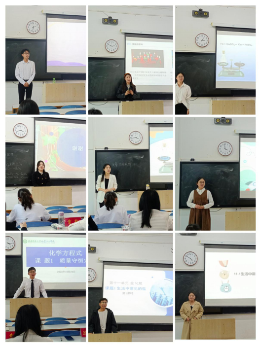比赛过程中,9名同学分别从微型课、现场答辩、才艺展示等三个环节进行了激烈角逐,化学专业的低年级学生进行了现场观摩,评委专家进行了现场打分并做了精彩点评。最终,张悠悠、李营涛两名同学凭借出色的表现获得一等奖,并将代表学院参加学校2024届师范类专业毕业生教学技能比赛。