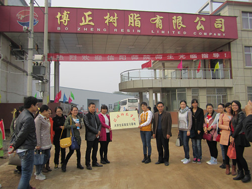 仪式上,我院副院长骆定法代表我院讲话,对博正树脂有限公司的大力支持表示感谢,介绍了我院的发展历程、专业特色等基本情况。他强调,希望双方都能够积极利用好实践实习基地这个平台,加强沟通和交流,实现共赢。博正树脂有限公司总经理张升喜在讲话中对我院的办学成就给予了高度评价,表示博正树脂有限公司将努力创造条件,全力支持实践实习基地的建设,为同学们提供优质实习服务,希望更多的学子能够参与实践实习,与公司携手研发、共兴共荣,给企业带来活力。在热烈的掌声中,骆定法和张升喜共同为实践实习基地揭牌。随后,我院12级化学工程与工艺班同学对该公司进行了参观实习。
