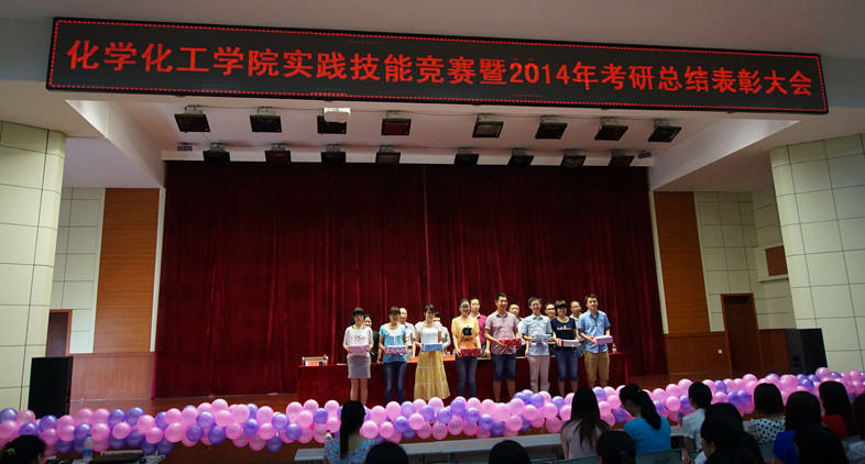 5月29日,williamhill官网在逸夫楼报告厅隆重举行化学实践技能竞赛暨2014年考研总结暨表彰大会。校团委书记耿劲松、学工部副部长赵晨、我院党总支书记周涛,副院长归风铁、骆定法、杨术明等相关领导和400余名师生参加了大会。大会由党总支副书记宋力主持。