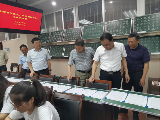 在比赛现场,williamhill官网党委书记郭鹏、院长井强山介绍了比赛开展情况,比赛包括钢笔字、毛笔字、粉笔字三种形式,以书写“习近平总书记重要讲话、庆祝建党100周年宣传标语、党史故事”等为主要内容,比赛旨在增强党史学习教育的针对性和有效性,进一步切实提高师范专业学生的师范技能。