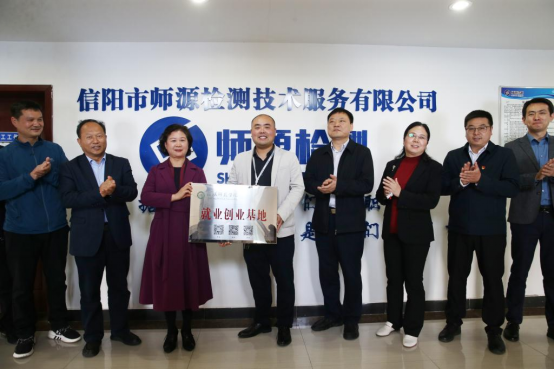 李俊一行与市人社局进行交流座谈,对高层次人才培育选拔、“带编制、送岗位、进校园”招聘、毕业生创新创业扶持、毕业生留信政策宣讲等达成了共识,明确加强联系与合作,为毕业生就业创业贡献,有效对接河南省“十大战略”发展。随后,访企团一行到信阳舜宇光学有限公司、信阳市浉源检测技术服务有限公司、河南省万泰集团公司等企业走访,在就业实习、人才培养、产教融合等方面进行交流探讨,签署了校企合作协议,并进行了就业创业基地授牌。