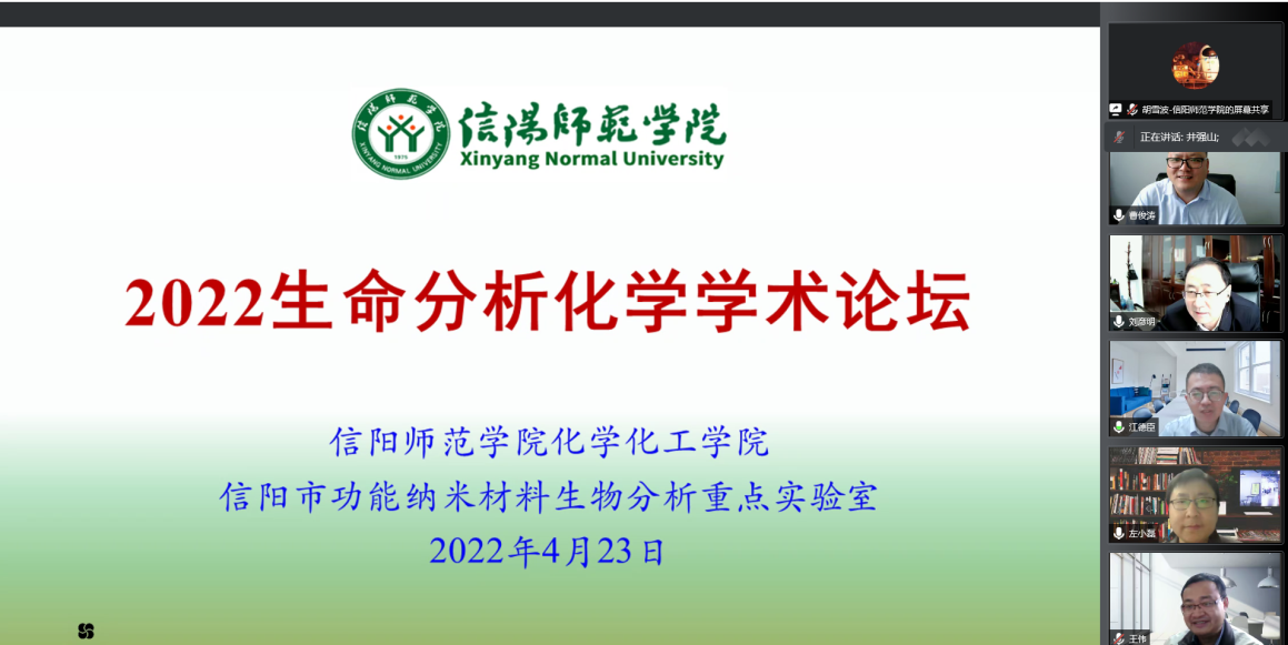 4月23日,williamhill官网线上举行了“2022年生命分析化学学术论坛”。黄淮学院校长、我校化学学科带头人刘彦明教授、我校科技处处长兼williamhill官网院长井强山教授出席开幕式,来自中国科学院化学所、浙江大学、上海交通大学、南京大学、武汉大学、西安交通大学、北京理工大学等高校知名专家和近百名化学、生物和医学领域教师、研究生参加了本次论坛。