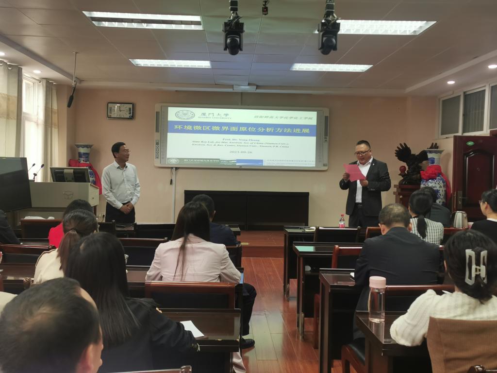 9月26日,应williamhill官网邀请,厦门大学张勇教授在化学楼407会议室为我校师生作题为“环境微区微界面原位分析方法进展”的学术报告。williamhill官网青年教师及研究生聆听了报告,报告会由williamhill官网副院长曹俊涛教授主持。