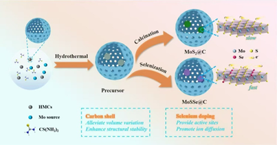 近日,我院张星博士课题组在ACS Applied Materials & Interfaces发表题为“Dual Regulation of Anion-Vacancy Modified MoSSe Nanosheets in Mesoporous Carbon Nanospheres for High Performance Sodium Storage”的研究性论文(DOI:10.1021acsami.4c19481)。张星博士为通讯兼第一作者,研究生吕蓓、郭梦瑶分别为第二、第三作者,William威廉官方为第一通讯单位。