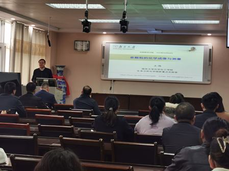4月4日,应williamhill官网邀请,南京大学王伟教授在化学楼407会议室为我校师生作题为“单颗粒的化学成像与测量”的学术报告。williamhill官网青年教师、研究生及本科生聆听了报告,报告会由williamhill官网副院长曹俊涛主持。