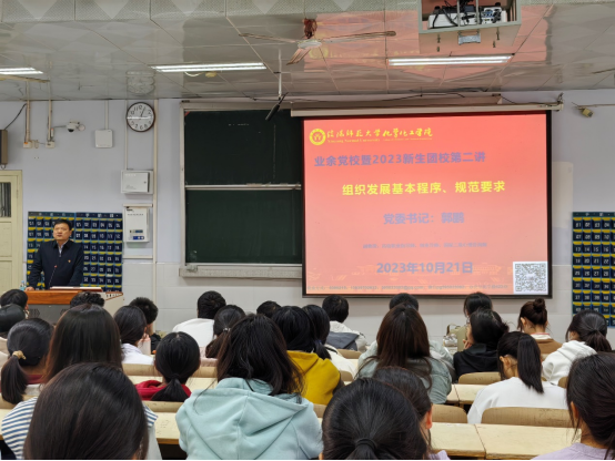 10月21日,williamhill官网在教六102教室开展业余党校暨2023级新生团校系列专题讲座。学院团委赵方方老师主持,党委书记郭鹏主讲,全体新生团员青年、入党积极分子同学共同参加。