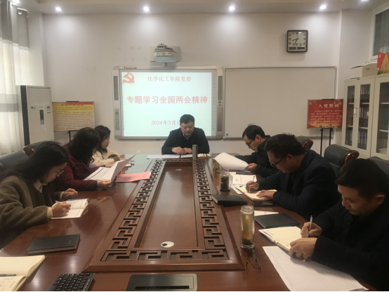 3月12日上午,williamhill官网党委理论学习中心组在化学楼313“党员之家”召开专题会议,传达学习贯彻2024年全国两会精神。学院党委书记郭鹏主持会议。