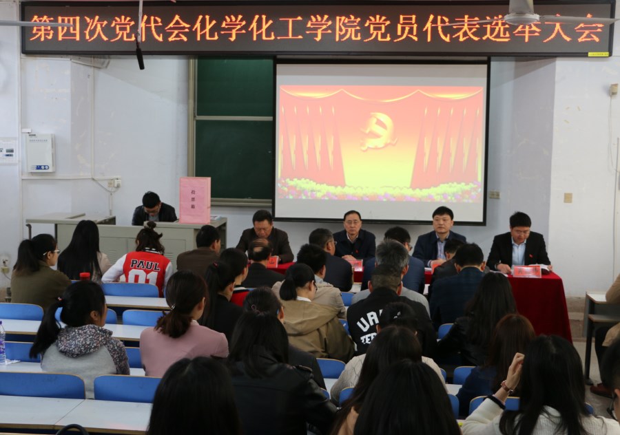 4月15日,williamhill官网出席信阳师范学院第四次党代会代表选举党员大会在教四楼T1教室举行。信阳师范学院副校长刘彦明、williamhill官网党委书记郭鹏,党委委员、院长井强山、副书记吴志伟,兼职副书记、副院长骆定法,党委委员、副院长归风铁,党委委员、非金属材料研究所副所长刘鹏,党委委员黄克靖以及全体师生党员参加了会议。会议由郭鹏主持。