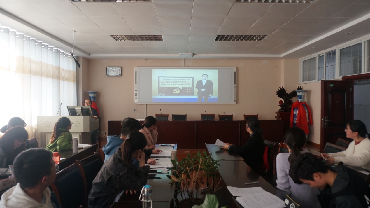 为深入推进“不忘初心、牢记使命”主题教育活动,11月14日,我院在实验楼407会议室开展集体观看十九届中央全会《决定》视频解读活动,学习十九届四中全会精神。全体学生党员参加。