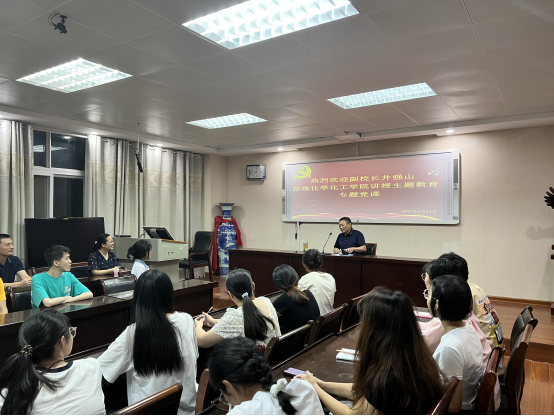 6月12日晚,副校长井强山以《学习贯彻新党章,凝聚团结奋斗动力,忠诚履行新使命》为题讲授主题教育专题党课,williamhill官网师生代表参加。