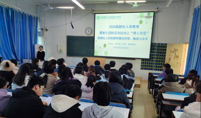 11月18日,williamhill官网在教九楼301教室开展2025级新生入学教育暨新生团校系列活动之“博士讲堂”,williamhill官网张钰博士主讲,学院团委书记赵方方主持,2025级应用化学、材料化学专业新生参与。