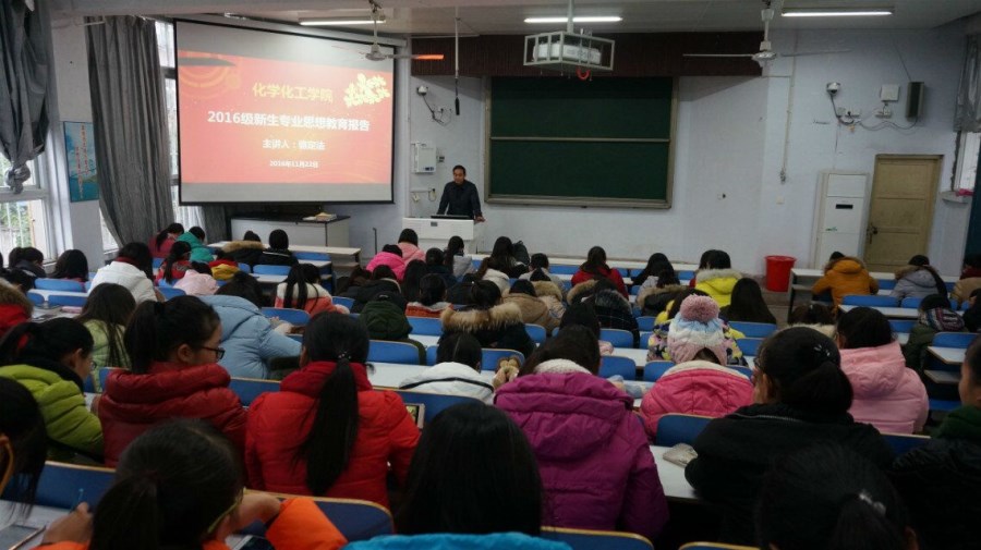 为使大学生更好的了解williamhill官网化学、应用化学、化学工程与工艺和材料化学专业情况,加强同学们对本专业的认识,更好地把握大学时光,充实的度过大学生活。11月22日下午,williamhill官网在教四T1、T2和教七303教室分别对2016级各专业新生进行专业思想引导教育活动,williamhill官网副院长骆定法、归风铁和刘鹏,分别从四个专业开展专业教育引导。