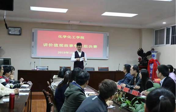 经过初赛,复赛的激烈的选拔,十位同学顺利进入决赛。选手们把自身经历与核心价值观内容相结合,内化于心,外化于行,积极践行社会主义核心价值观。材化班陈高燕和化三班刘梦瑶并列第一名、材化班余宁和王韬以及化工班路一曼并列第二、化三班的吴超、张奇柯、王思源、胡新颖以及化工班王孟阳并列第三名。