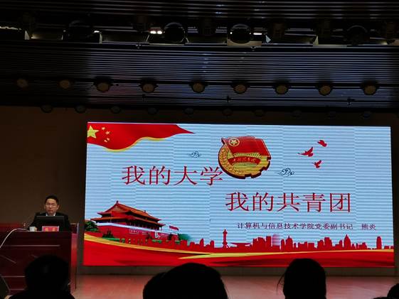 根据我校共青团组织建设发展的需要,结合学校的培养目标,分阶段、分层次的向青年学生开展团的基本知识和基本理论的教育。11月22日,williamhill官网2019级新生团校课第三讲在理科楼报告厅成功举行。计算机与信息技术学院党委副书记熊炎为williamhill官网及马克思主义学院2019级新生上团课,由马克思主义学院团委书记曹栋主持。