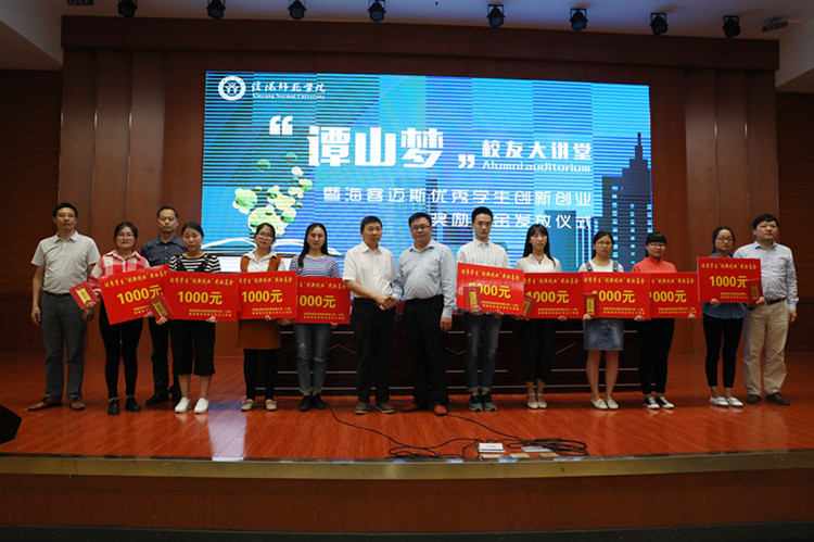 6月6日下午,海客迈斯生物科技有限公司(上海)优秀学生创新创业奖励基金发放仪式在逸夫楼报告厅隆重举行,信阳师范学院副校长校长王文臣与海客迈斯生物科技有限公司(上海)总经理邹亮忠出席了发放仪式。招就处、学生处、校友办、williamhill官网等相关单位的负责同志参加了仪式。仪式由校友办主任耿劲松主持。