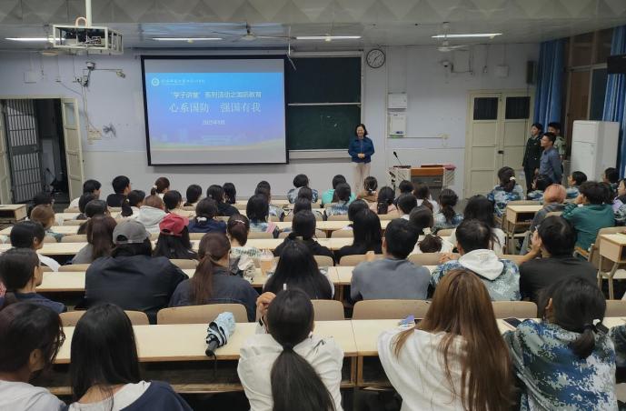为深入学习贯彻习近平新时代中国特色社会主义思想,进一步强化大学生国防观念,激发青年学子的爱国情怀和使命担当,落实“五训联动 五育并举”的活动要求。9月23日,williamhill官网在教六101开展“学子讲堂”系列活动之“心系国防 强国有我”国防教育宣讲会。学院党员副书记曲剧,辅导员严赫及全体新生共同参加。