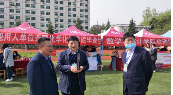 党史学习教育活动中,围绕“学党史、悟思想、办实事、开新局”,针对为师生办实事、办好事、解难事这一关键,积极服务毕业生就业创业,4月10日,由河南省教育厅主办、信阳师范学院承办的“河南毕业生就业市场豫南分市场暨信阳师范学院2021届毕业生线下春季双选会”在学校西操场举行。williamhill官网组织毕业生积极参加招聘会,学院党委书记郭鹏、院长井强山、党委副书记吴志伟、毕业班辅导员冷向宇、就业办秘书严赫等就业创业工作领导小组成员莅临招聘会现场,一线开展毕业生就业招聘指导、咨询、服务,并与用人单位以及参与招聘的校友代表进行沟通交流,切实为毕业生办好实事。