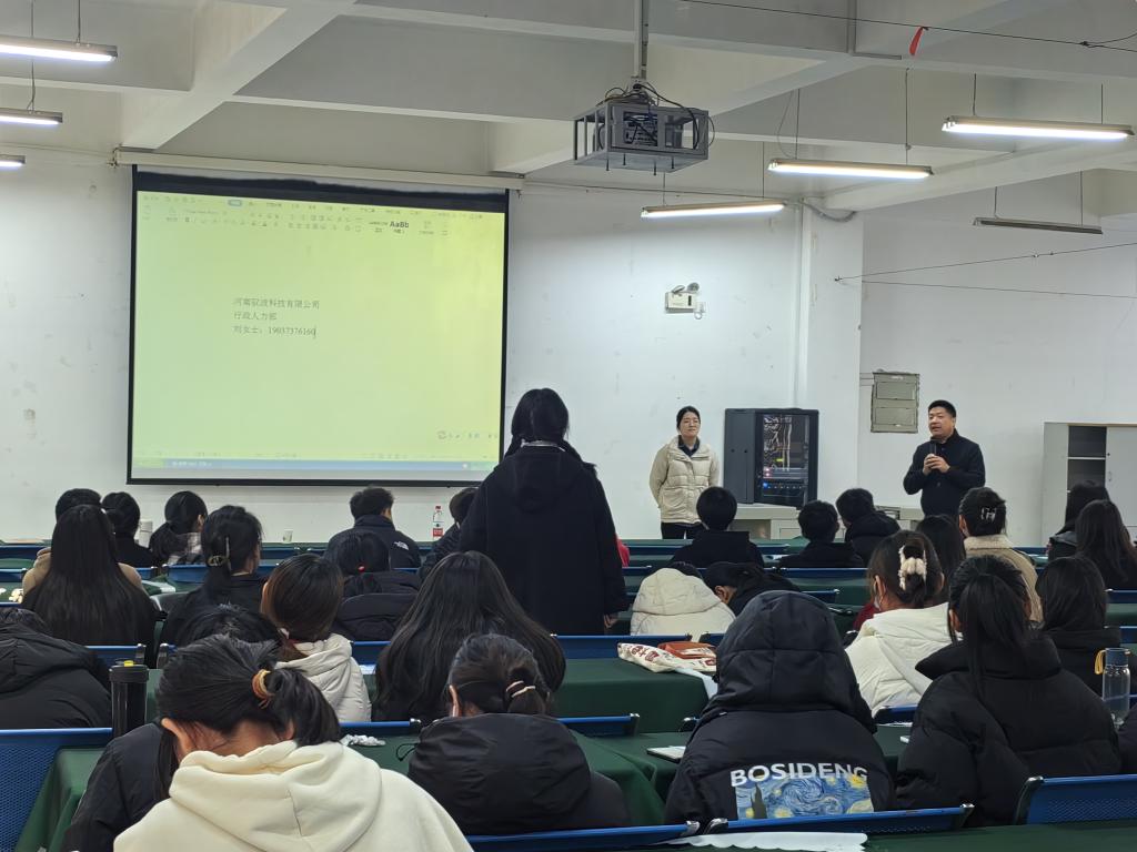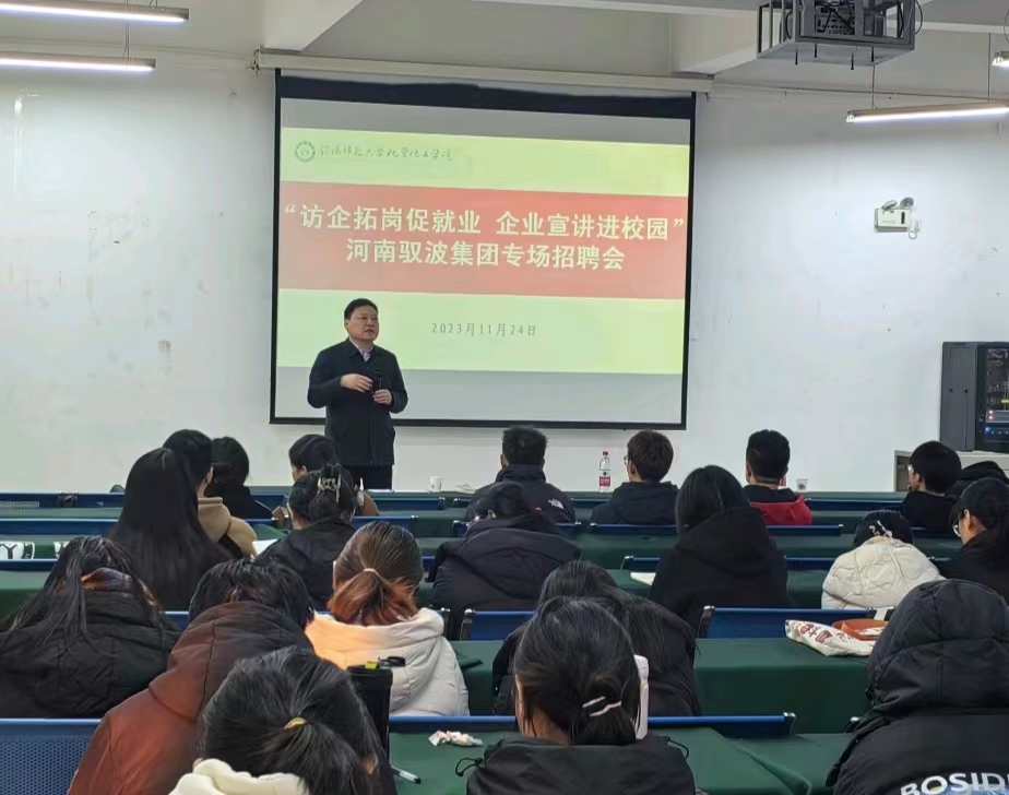 11月24日下午,williamhill官网在逸夫楼A座招聘大厅开展“访企拓岗促就业,企业宣讲进校园”河南驭波集团专场招聘会活动。此次招聘会邀请到我院1997届优秀校友、河南驭波集团董事长甄西合,活动由williamhill官网院党委书记郭鹏主持,就业工作秘书严赫及应届毕业生参加。
