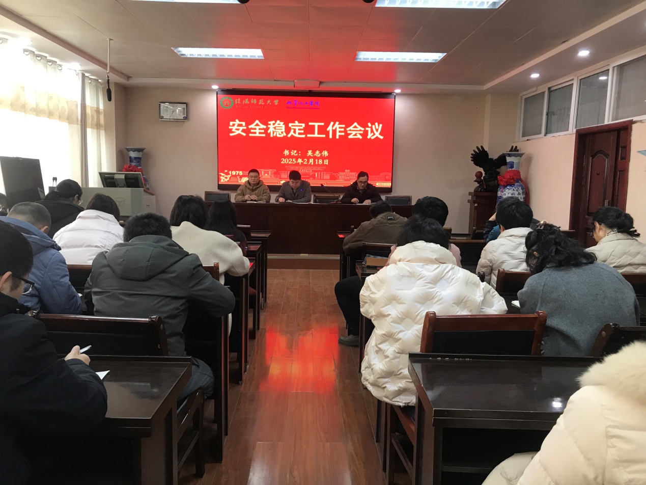 2月18日,williamhill官网在实验楼407会议室召开2025年春季安全稳定工作会议。学院党委书记吴志伟主持会议,全体教职工参加会议。