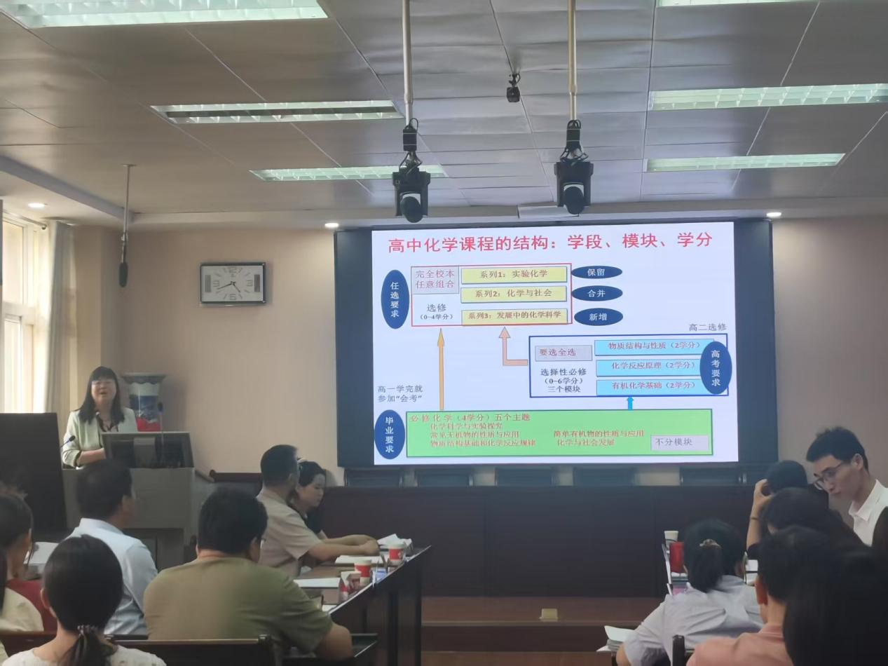 戢明教授结合河南省基础教育实际,深入解读了新课程标准对化学学科核心素养的要求,对比分析了近年来河南省及全国中高考化学试题的命题特点,并结合典型案例,分享了如何通过项目式学习、实验探究教学等方式提升学生的学科素养。她指出,当前中高考命题正从“知识考查”向“能力立意”转变,试题更加注重真实情境的创设、学科思维的考查以及跨学科融合能力的体现。教师应关注化学学科核心素养在课堂教学中的落地,避免“机械刷题”倾向。戢明教授的报告内容丰富,专业性、学术性、实践性强,让师范生对新课标、新教材有了更全面、更深刻的理解、对中高考的命题方向有了更加清晰的认识。
