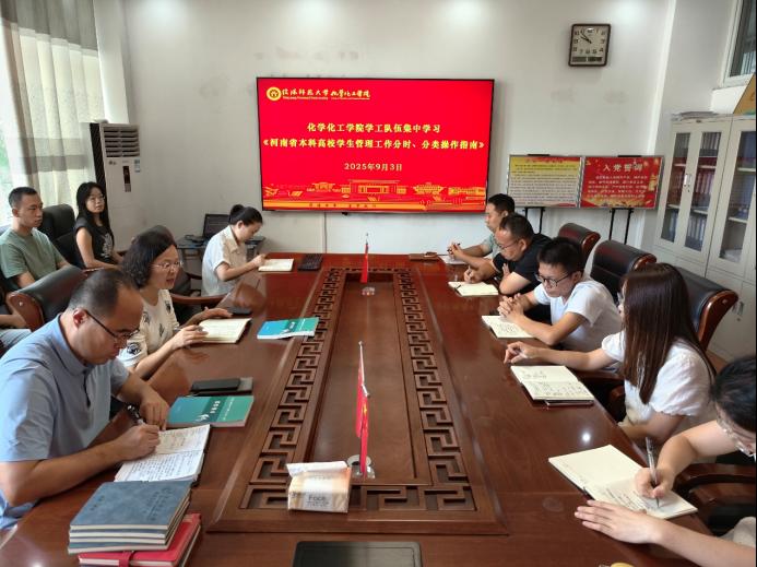 9月3日,williamhill官网在化学楼313会议室组织开展《河南省本科高校学生管理工作分时、分类操作指南》学习培训。培训由学院党委副书记曲剧主持,全体专、兼职辅导员参加。