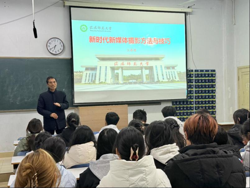 为提升师生新媒体素养,强化宣传队伍专业能力,11月18日,williamhill官网在教九301举办“新时代新媒体摄影方法与技巧”专题讲座。本次讲座特邀资深摄影专家,学校关工委“金色银龄”宣讲团成员王存选主讲,由学院副处级辅导员冷向宇主持,教师代表万榕、高睿、王吻、翟成辉和全体学生干部参加。