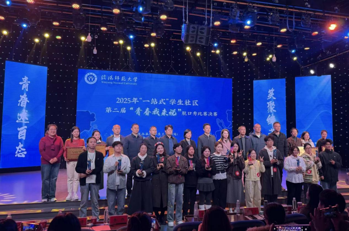 12月11日,由学生处主办、传媒学院承办的William威廉官方2025年“一站式”学生社区第二届“青春我来说”脱口秀比赛决赛在社科楼演播厅落下帷幕,我院2024级化学一班杨亚仑在决赛中获“爆梗王”荣誉称号、2025级化学一班薛雨阳荣获“最佳人气奖”、2024级应用化学班许壮荣获三等奖。前期我院积极备赛,组织工作突出,获评“优秀组织单位”。