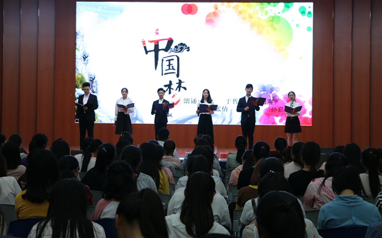 活动伊始,由演讲与朗诵协会带来的《中国梦》在抑扬顿挫间让我们领略了当今祖国的繁荣富强,朗诵者振臂高呼“国家富强、民族振兴、人民幸福”道出了当代青年们的共同心愿,立志以波澜壮阔之势铸就中华民族伟大复兴的中国梦。传媒学院带来《家是玉麦,国是中国》,三位朗诵者身着民族服装声情并茂地讲述了西藏玉麦乡一乡三人仍要坚守祖国边疆领土的感人故事,一声声“家是玉麦,国是中国”感人肺腑,荡气回肠,饱含了边疆儿女对祖国的无限热爱与崇敬。williamhill官网带来《我们是青年》,以慷慨激昂、铿锵有力的朗诵诠释了当代青年的风华正茂以及满腔热忱,表现了青年们甘为实现强国富民的宏愿无私奉献的品质。随后大学生合唱团带来歌曲《再一次出发》,于宛转悠扬间显昂扬斗志,于悦耳动听里现初心不变,于新时代的号角中当代青年再一次出发。教师教育学院、商学院、文学院以及物理电子工程学院也分别带来他们的精彩朗诵,深情述说了新时代的朝气蓬勃,并鼓励青年朋友们坚定信念、百折不挠、胸怀天下,以刚毅自信的脸庞在奋斗中成长。每一次朗诵结束,台下都响起雷鸣般的掌声,以表达对朗诵者的无限认同。
