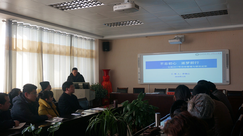 1月30日下午,williamhill官网在化学实验楼407会议室召开领导班子2017年度考核述评大会。由校团委副书记朱国朋、人事处人事科科长雷梁组成的校第四考核组应邀出席会议,我院处级领导班子成员与全体教职工参加会议。会议由学院党委书记郭鹏主持。