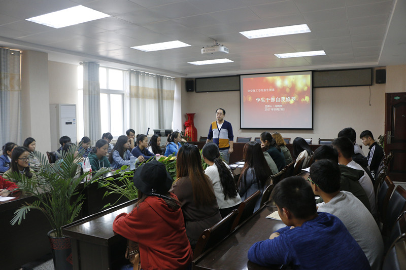 10月21日,williamhill官网党委秘书冷向宇在化学实验楼407会议室为学生干部上了一次生动的团课,化院九十余名学生干部参加了此次活动。