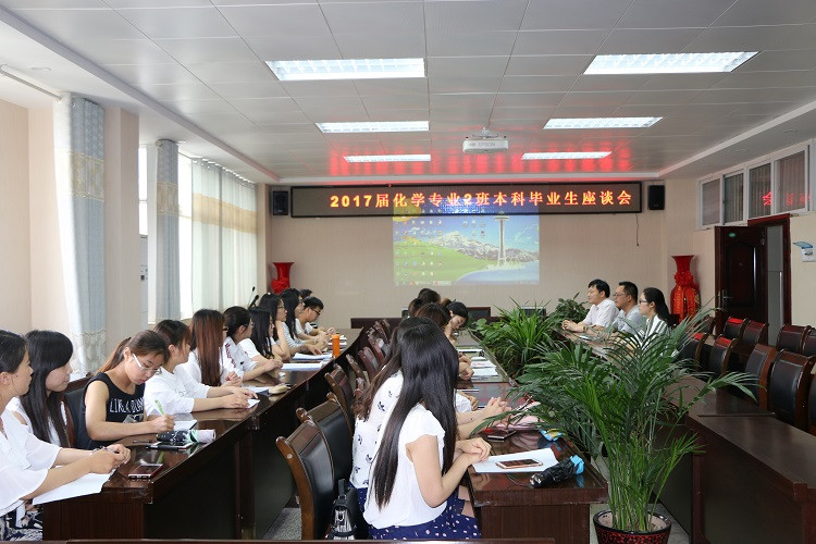 座谈会上,郭鹏对同学们四年来取得的成绩表示了充分肯定,鼓励同学们以更加优秀的表现度过毕业前的这段时光,希望他们毕业之后能更加刻苦地投入到学习、工作中,为化院,也为母校增光添彩。随后,学生代表发言,他代表全体毕业生感谢母校四年来的培养,并且表示在毕业前的这段时间里一定配合老师认真完成毕业前的各项工作,为低年级同学做好榜样。最后,郭鹏在总结中对毕业生提出了四点希望:一是希望同学们毕业后能常回“家”看看。二是希望同学们之间加强相互联系。三是加强与社团、学生会之间的联系。四是加强与与化院老师们的联系。分享学习工作成果,交流传递人生经验。