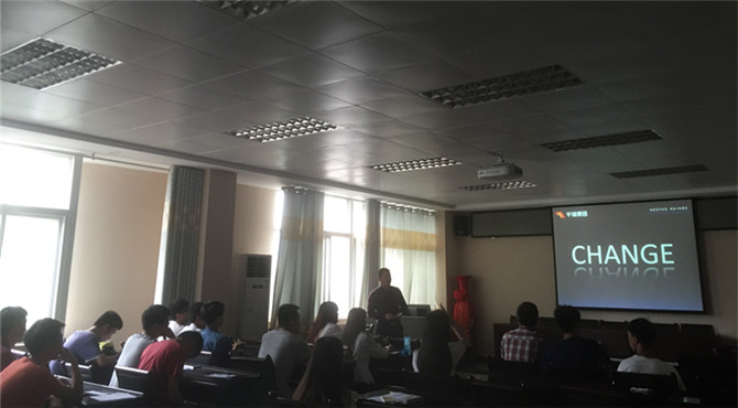 活动伊始,王老师通过播放短视频“未来的一天”让大家大家对互联网+可能给未来生活带来的巨大变化有了全新的认识,接下来王老师分别从移动互联时代行业发展状况及创新、河南地区历届毕业学生高薪就业信息分享、大学时代我们如何做好课程规划及扩展专业技术技能、大学生毕业学生创新上线App项目分享等几个方面为大家意义诠释了移动互联网中潜藏的巨大商机,最后,王老师与同学们亲切互动,耐心解答同学们的疑问。讲座于一个多小时后在热烈的掌声中结束。