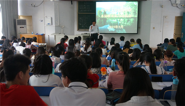 首先,归院长做了动员讲话,提醒同学们实习对今后职业选择以及职业发展的重要意义。随后,归院长给同学们详细介绍了实习的相关事宜,并对学校的实习政策一一加以解读。讲解过程中,归院长反复强调了实习期间的安全问题,归院长表示,希望同学们认识到自己角色的转变,牢固树立“安全第一”的思想,严格遵守实习单位的纪律,文明礼貌,团结友爱,努力提升责任感和使命感。