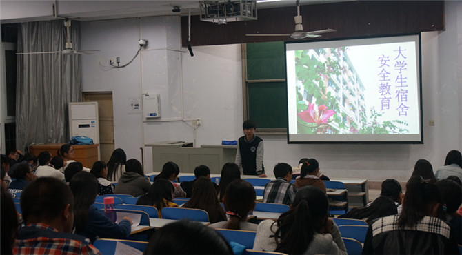 活动伊始,路老师发针对10月10日学校宿舍的失火事件,向大家强调了合理用电的重要性,并明令禁止同学们使用热得快、烘鞋器、电炉子等大功率用电器。同时他也希望大家能够养成良好的用电习惯,时刻注意宿舍内可能存在的安全隐患。接着,董浩洋通过幻灯片让大家观看了特色法制节目《平安365》的片段,它以防治火灾为主题,以实地采访的形式向大家说明了目前大学生宿舍存在安全隐患的主要原因。最后,董浩洋主席号召大家,要努力保持宿舍形象及卫生,加强自律与他律,从身边小事做起,自觉遵守公寓管理制度。此次活动于一个小时后圆满结束。