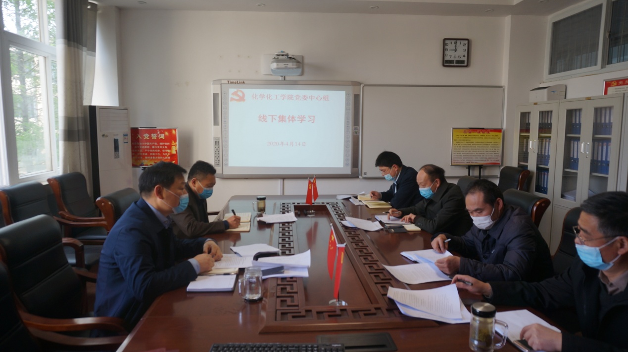 4月14日,williamhill官网分党委在“党员之家”进行理论学习中心组线下集体学习,中心组全体成员全程佩戴口罩认真参加学习。