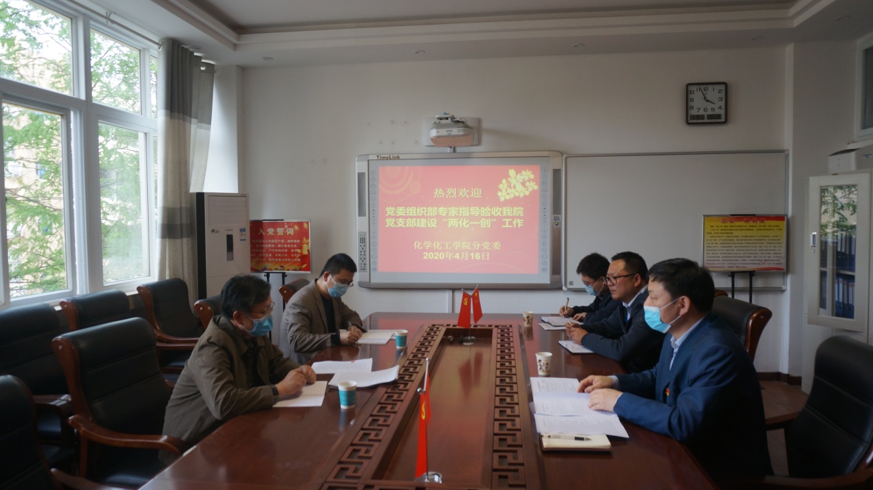 根据学校《关于开展党支部“两创一化”达标引领行动验收工作方案》工作要求,4月16日,校“两化一创”达标引领行动验收工作第二验收组组长、校党委组织部正处级组织员刘根货,验收组成员、校党委组织部李奎科长莅临williamhill官网检查指导工作。williamhill官网分党委书记郭鹏主持会议并向验收组汇报工作。学院推荐的“样板”支部书记田永尚、曹俊涛一起参加会议。