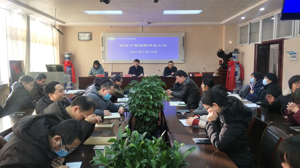 分党委20名科级干部分别结合各自岗位职责落实情况依次作了大会述职汇报。与会全体教职工本着客观、公正、负责的态度,通过填写《科级干部民主评议表》,从德、能、勤、绩、廉等方面,对科级干部的工作情况进行了满意度评价。