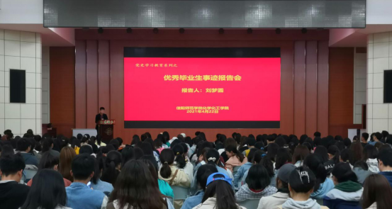 为深入贯彻习近平在党史学习教育动员大会的讲话精神,落实党史学习教育工作开展,创新党史学习教育方式,williamhill官网4月22日晚在逸夫楼报告厅举行“党史学习教育之优秀毕业生报告会”。此次报告会邀请到williamhill官网2016级毕业生刘梦圆作报告,由williamhill官网辅导员严赫主持,williamhill官网2019级全体学生参加。