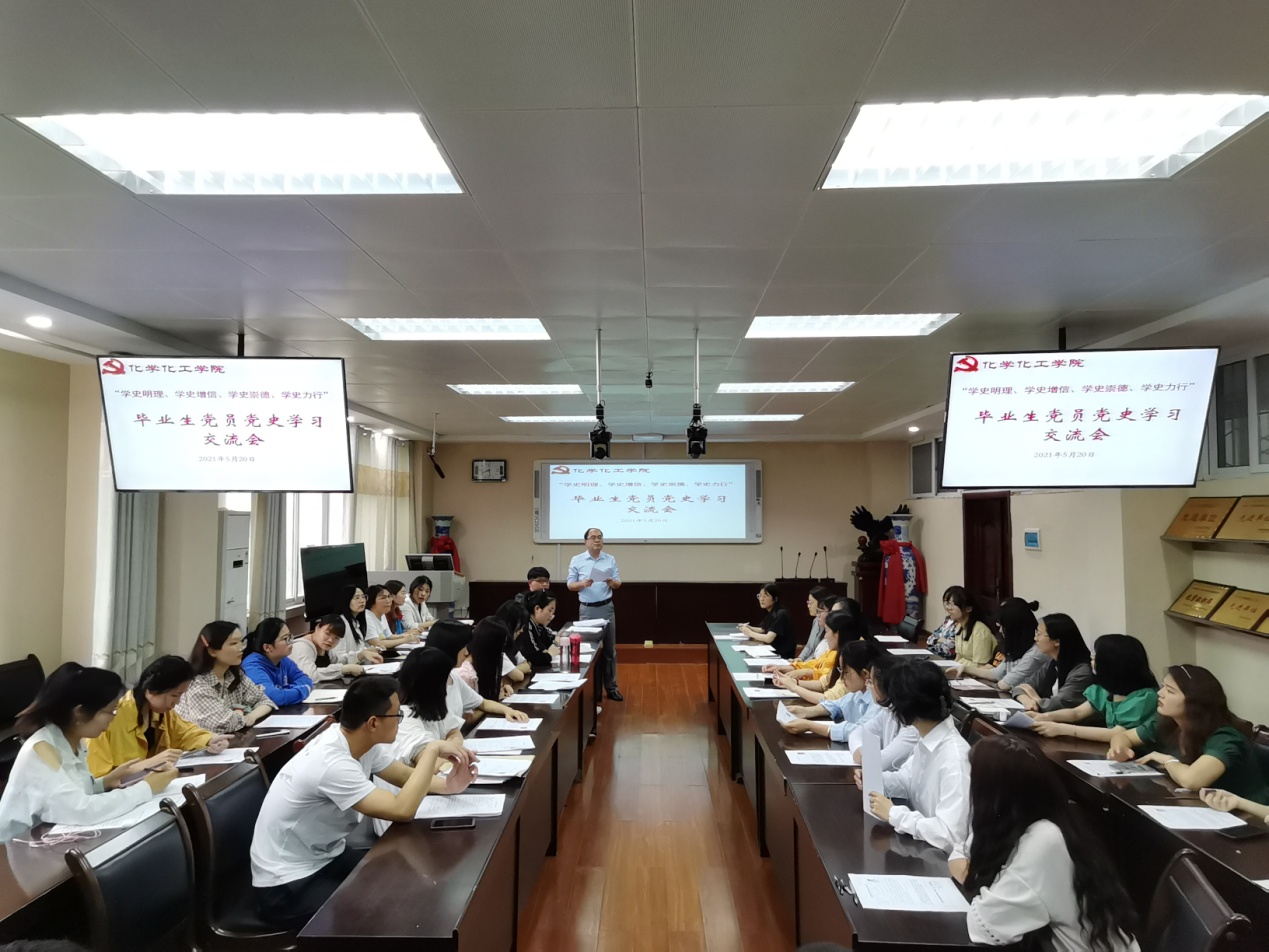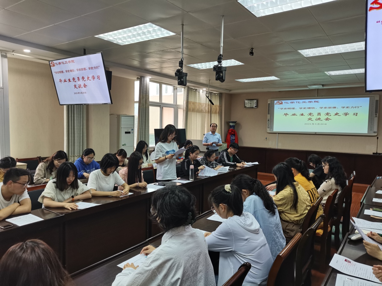 5月20日下午,williamhill官网2021届毕业生党员在实验楼举行“学史明理、学史增信、学史崇德、学史力行”党史学习交流会,交流学习《中国共产党简史》心得体会。学习交流会由分党委专职组织员冷向宇主持。