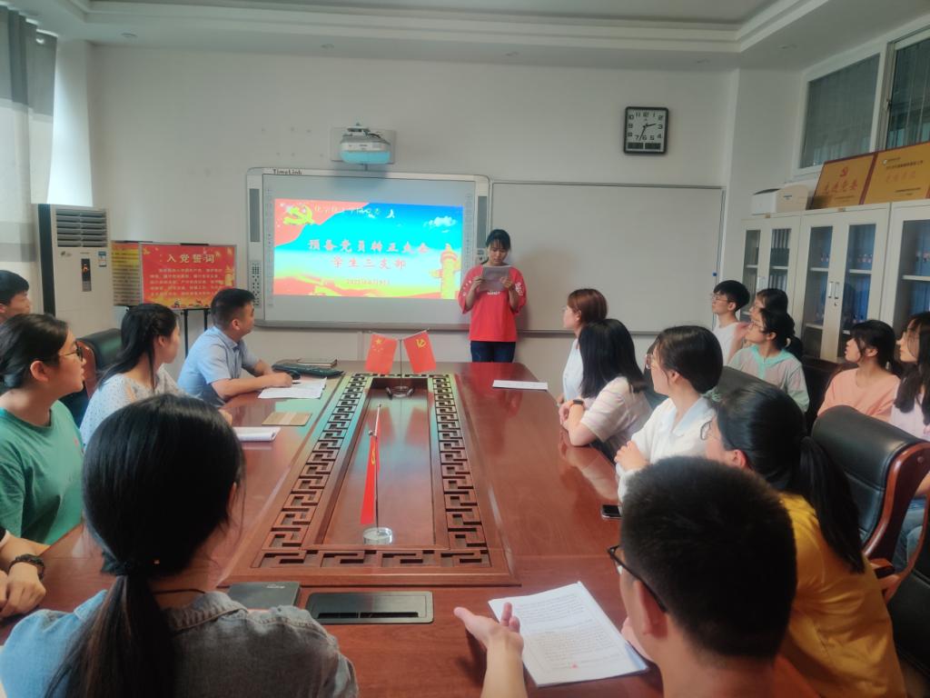 本次支部会议由闫文冉同志主持。首先,由申请转正的预备党员汇报自己在预备期间的表现,表明自己对转正的态度和今后的决心,并宣读转正申请书;随后,学生党支部宣读了申请转正党员的的党内外群众意见。与会有表决权的党员也都发表了对预备党员转正的意见,肯定了优点,指出了缺点,提出了希望。在执行预备党员接收程序时,严格履行了党章规定的预备党员转正手续,本次大会共有张春晓、王粉、尹亚、苏畅等4名预备党员转为正式党员。