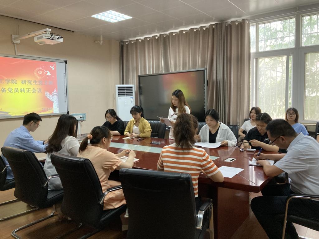 为进一步扩大党员队伍,严格履行党章规定的预备党员转正手续,2021年6月9日,williamhill官网研究生支部在实验楼210室召开预备党员转正大会,研究生支部7名正式党员和9名预备党员参加本次大会,其中有2名预备党员转为正式党员。