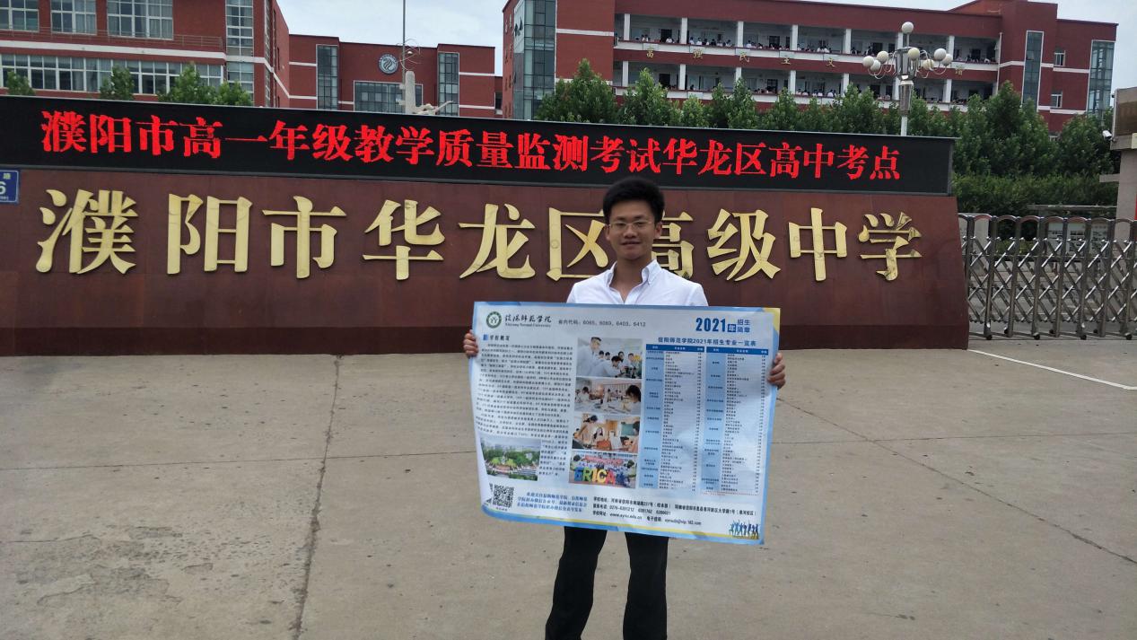 为提高学校生源质量,扎实推进信阳师范学院2021年度招生宣传工作,williamhill官网专门指派招生就业秘书严赫老师一行负责人,于7月1日至7月2日赴濮阳地区(本年度联系包片地区)进行了系列招生宣传。