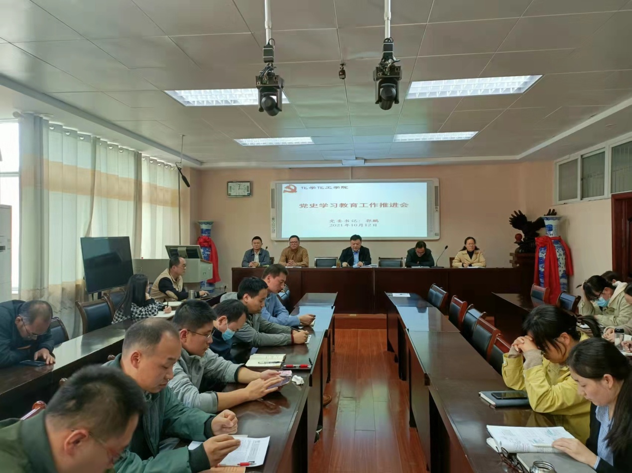 10月12日下午,我院在化学实验楼407会议室召开党史学习教育工作专题推进会,分党委委员、专职组织员、各支部书记参加会议。会议由院党委书记郭鹏主持。