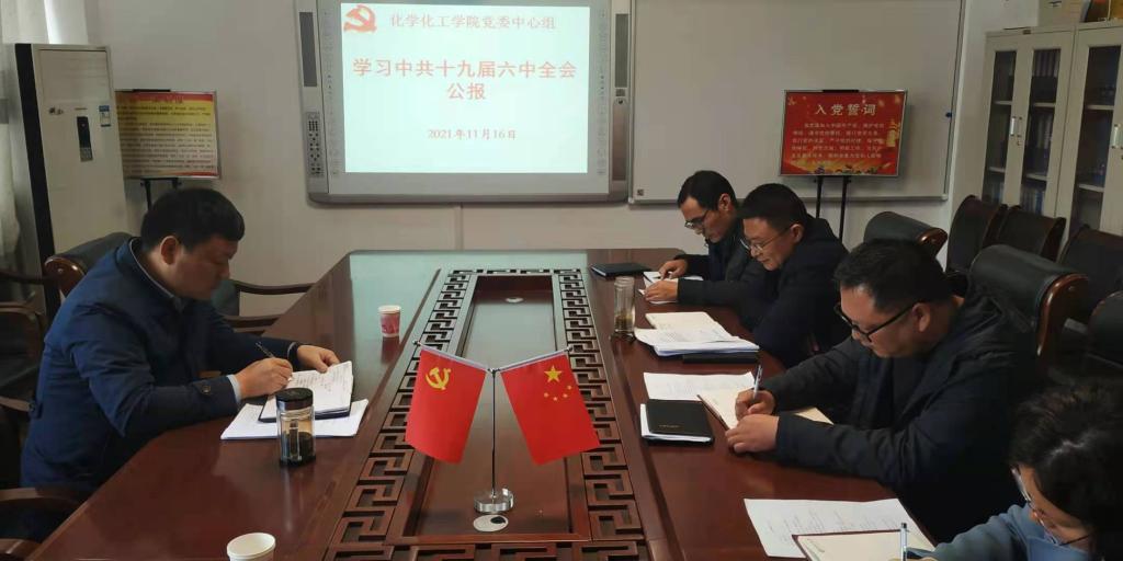 11月16日上午,williamhill官网党委理论学习中心组在实验楼313“党员之家”召开专题学习会,集中学习《中国共产党第十九届中央委员会第六次全体会议公报》、《中共中央关于党的百年奋斗重大成就和历史经验的决议》精神。学院党委书记郭鹏主持会议。中心组全体成员参加学习会。