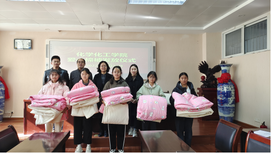 11月24日,我院在化学楼407会议室举行爱心棉被发放仪式。我院党委副书记曲剧,辅导员冷向宇、赵方方、严赫老师出席本次发放仪式。