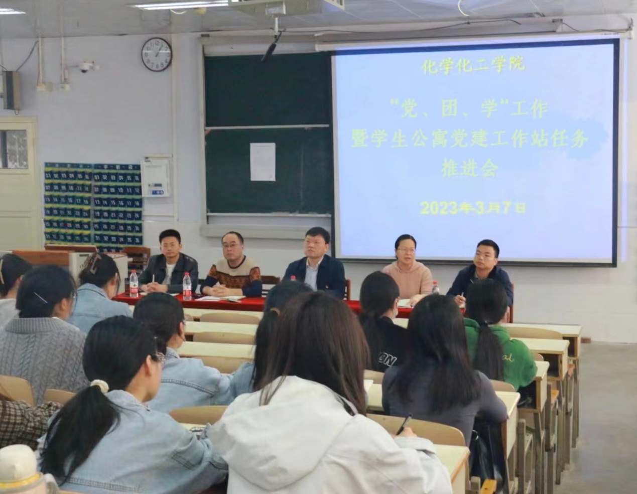 为深入学习宣传贯彻党的二十大精神,推进基层党建质量提升,切实抓好学生党建,以党建带团建发展,确保学生日常教育管理安全文明有序,保障人才培养质量平稳提高,3月7日,williamhill官网在教六102专门召开2022-2023学年下学期“党、团、学暨学生公寓威廉希尔推进会”。学院党委书记郭鹏、副书记曲剧、专职组织员冷向宇,辅导员邓耀辉、严赫等出席大会,全体学生党员、学生干部参加会议。