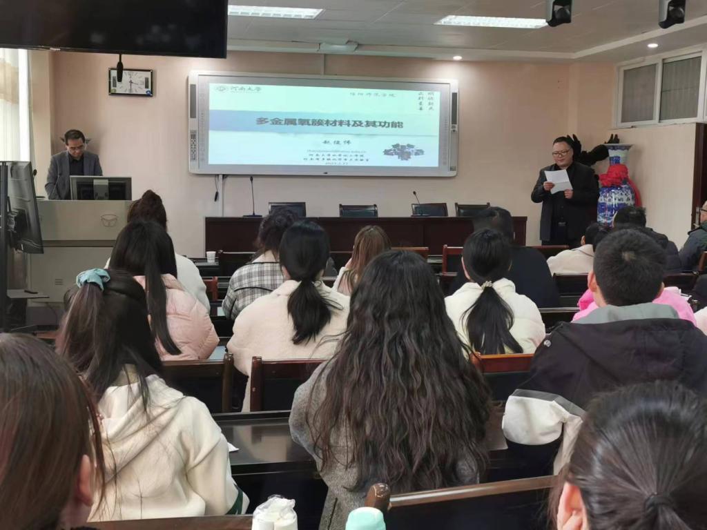 2月27日,应williamhill官网邀请,河南大学赵俊伟教授在化学楼407会议室为我校师生作题为“多金属氧簇材料及其功能”的学术报告。williamhill官网青年教师、研究生及本科生聆听了报告,报告会由williamhill官网副院长曹俊涛主持。