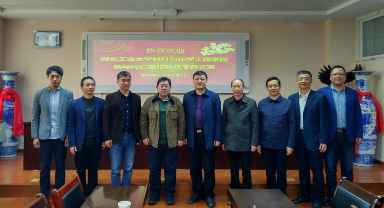 1021日上午,湖北工业大学材料与化学工程学院党委书记胡华伟、院长李学锋、副院长杨海涛、党委秘书谢洋等一行4人来williamhill官网考察交流工作。宾我双方在化学楼407会议室进行了亲切座谈交流。学校实验室建设与设备管理处副处长陈强,williamhill官网党委书记郭鹏、副院长归风铁、非金属研究所副所长刘鹏、研究生工作秘书曹俊涛、分党委专职组织员冷向宇等一起参加了座谈交流。座谈会由williamhill官网党委书记郭鹏主持。