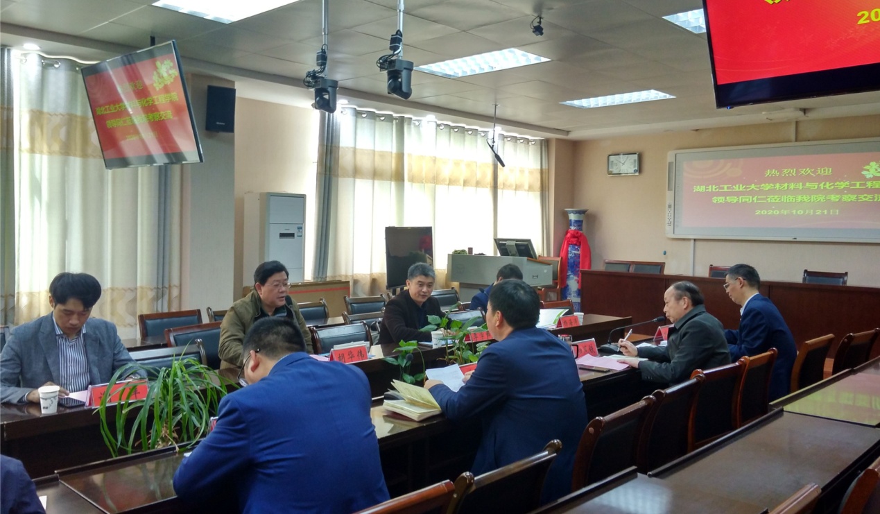 湖北工业大学材料与化学工程学院党委书记胡华伟、院长李学锋等介绍了湖北工业大学基本情况、材料与化学工程学院的发展现状,重点介绍了材料与化学工程学院教学、科研、本科生教育、研究生招生培养工作。